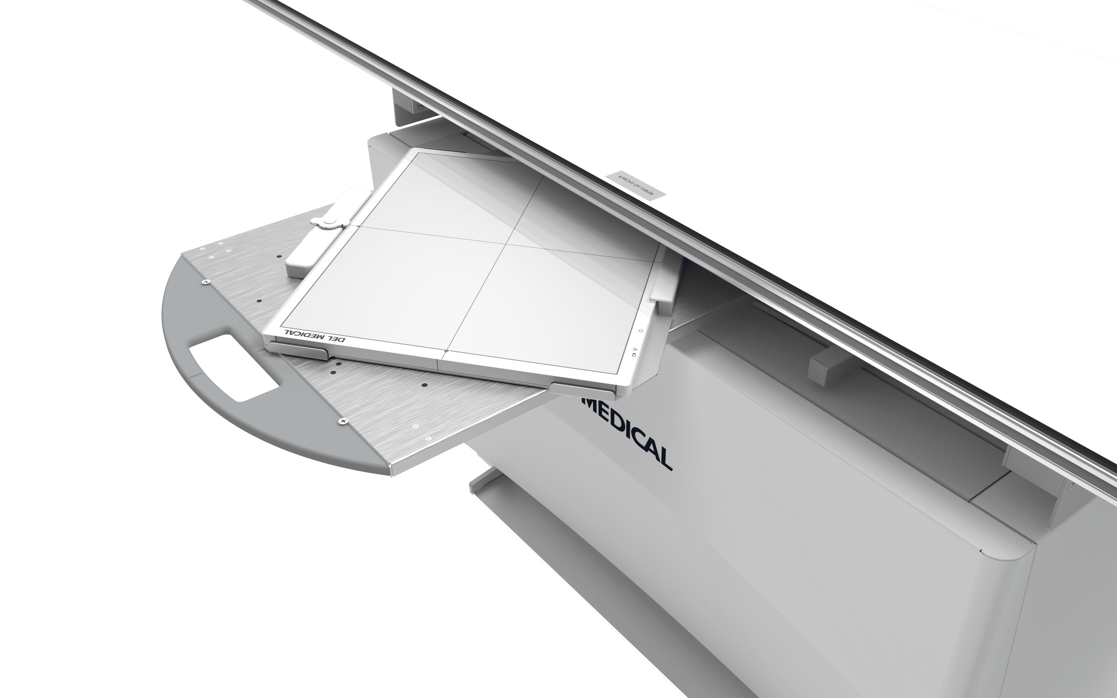 The easy-to-use rotating tray enables manual rotation of the DR detector. The stable one-handed operation supports fast portrait-to-landscape positioning without ever removing the detector from the tray. Fully extended steel slides activate locking mechanisms to assure detector protection when loading and unloading — designed to accommodate a wide array of ISO 14 x 17 in (35 x 43 cm) cassette-sized detectors.